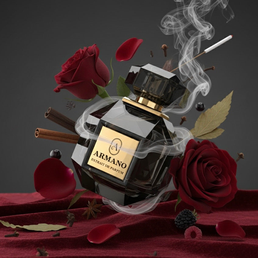 Crimson Veil is a symphony of dark romance and timeless allure. It opens with an opulent bloom of Turkish rose, enveloped in warm cinnamon and clove that draw you closer with every breath. Beneath the surface, earthy patchouli and smoky incense weave through creamy amber and soft musk — a dance of passion and refinement that lingers long after it touches the skin.